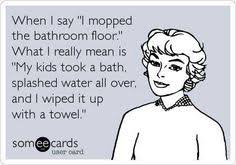 My son - and I am still in shock about this - had taken a shower voluntarily. I don't know if he noticed that there wasn't a shower curtain up. Does he even know the purpose of one? Apparently not. He could have gone to the other shower, but I guess that didn't occur to him. So he just took a shower anyway. And then left all the mess.